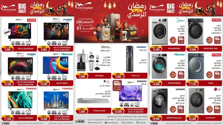 واليكم عروض اسواق المرشدى الجديدة اليوم على الاجهزة الكهربائية والادوات المنزلية