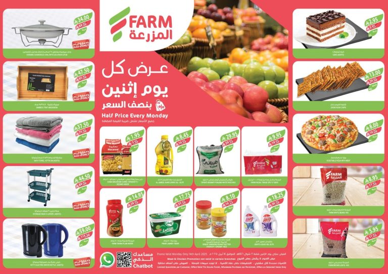 عروض نت تقدم لكم احدث عروض اسواق المزرعة جدة السعودية الجديدة فى صفحة واحدة – عروض كل اثنين بنصف الثمن من اسواق المزرعة – و ذلك ليوم الاثنين 14 ابريل 2025 او حتى نفاذ الكمية من اسواق المزرعة هايبر ماركت بجميع الفروع.