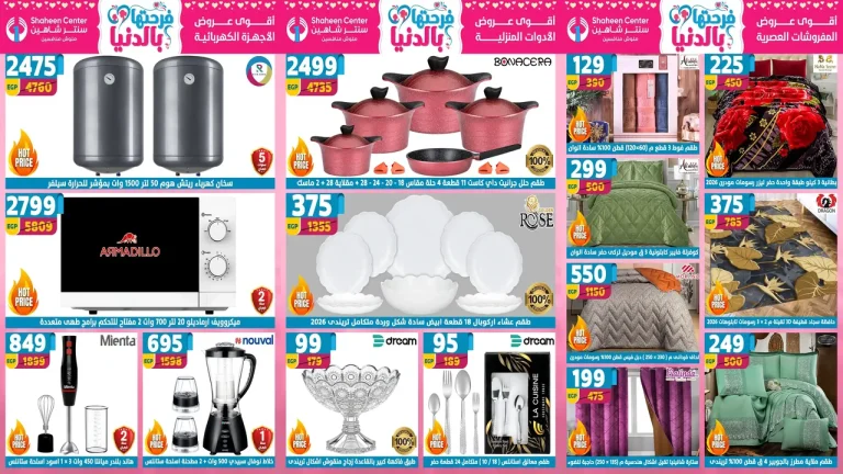سنتر شاهين يقدم عروض يومية واسبوعية تشمل على عروض الادوات المنزلية و عروض الاجهزة الكهربائية و عروض المفروشات و عروض الملابس و عروض مستلزمات المنزل والمطبخ عروض سنتر شاهين