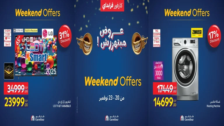 وغيرها من العروض التى تستعرضها معكم فى الصور التالية لاحدث عروض كارفور مصر نوفمبر 2025 عروض كارفور الويك اند 2025