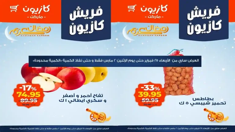 العروض الجديدة من كازيون تسرى من 25 فبراير حتى 2 مارس 2026 فريش كازيون فى جميع فروع كازيون