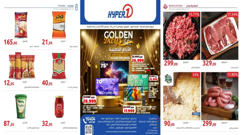 عروض الاسبوع من هايبروان سارية من 12 ديسمبر حتى 18 ديسمبر 2025 الايام الذهبية او حتى نفاذ الكمية بجميع فروع هايبر وان