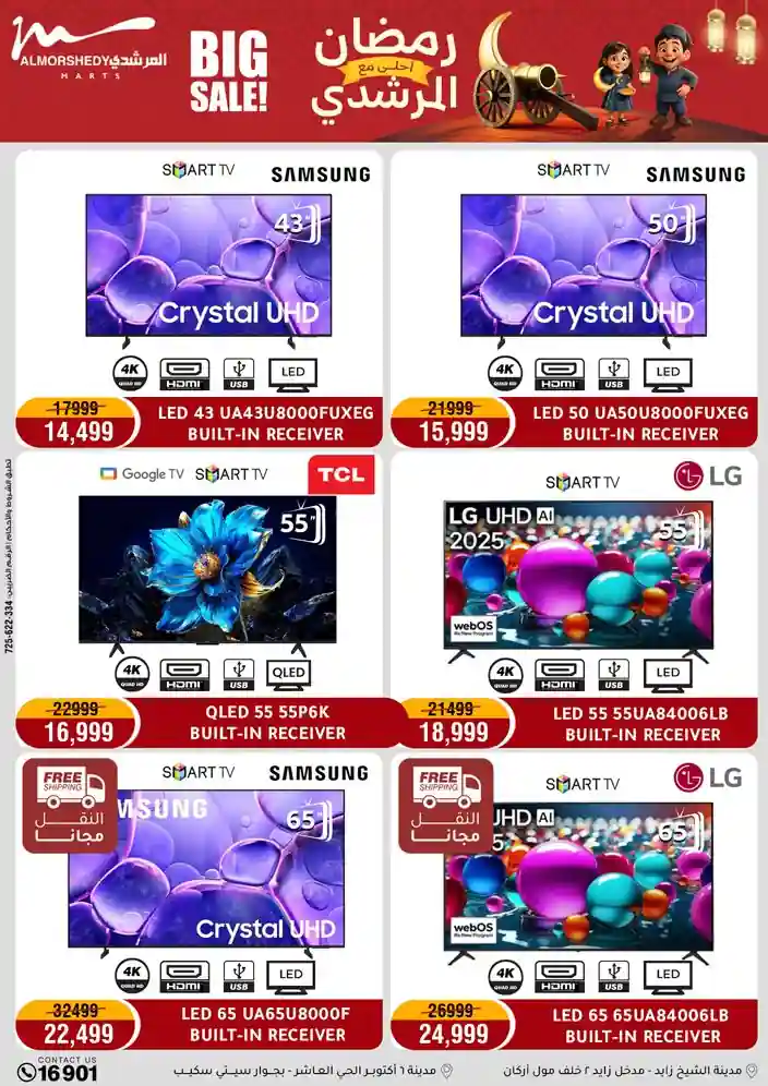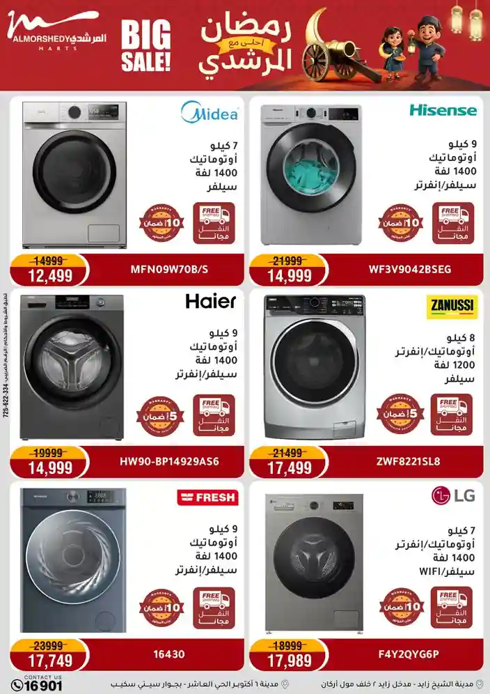 عروض جديدة من أسواق المرشدي مع اكبر مهرجان للتخفيضات في مصر خصومات حتى 70% وقسط براحتك بدون فوائد بأسعار العروض المخفضة على 12 شهر لحاملي بطاقة ائتمان CIB أو قسط براحتك مع VALU بدون مقدم حتى 60 شهر أو بدون مقدم وبدون فوائد مع نظام هاتريك وكمان النقل مجاني للقاهرة والجيزة والقليوبية على قسم الأجهزة الكهربائية والموبيليا والمراتب ( تطبق شروط المكان ) خصومات على جميع الأقسام أدوات منزلية – اجهزة كهربائية – مفروشات – موبيليا – نجف – سجاد – مراتب – ملابس رجالي وحريمي وأطفالي ومستلزمات ولعب الأطفال وجاليري وأقسام تانية كتير استمتع بالتسوق في أسواق المرشدي مع أكتر من 12 قسم و أكثر من 10,000 منتج يعني كل اللي بتحلم بيه عند المرشدي هتلاقيه