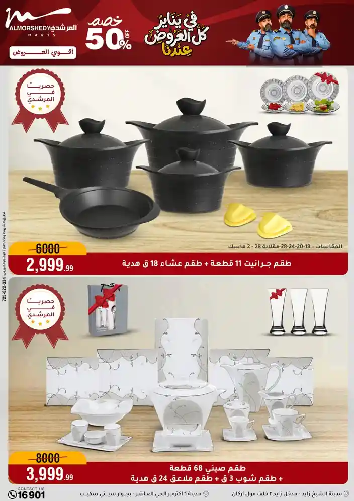 عروض جديدة من أسواق المرشدي مع اكبر مهرجان للتخفيضات في مصر خصومات حتى 70% وقسط براحتك بدون فوائد بأسعار العروض المخفضة على 12 شهر لحاملي بطاقة ائتمان CIB أو قسط براحتك مع VALU بدون مقدم حتى 60 شهر أو بدون مقدم وبدون فوائد مع نظام هاتريك وكمان النقل مجاني للقاهرة والجيزة والقليوبية على قسم الأجهزة الكهربائية والموبيليا والمراتب ( تطبق شروط المكان ) خصومات على جميع الأقسام أدوات منزلية – اجهزة كهربائية – مفروشات – موبيليا – نجف – سجاد – مراتب – ملابس رجالي وحريمي وأطفالي ومستلزمات ولعب الأطفال وجاليري وأقسام تانية كتير استمتع بالتسوق في أسواق المرشدي مع أكتر من 12 قسم و أكثر من 10,000 منتج يعني كل اللي بتحلم بيه عند المرشدي هتلاقيه