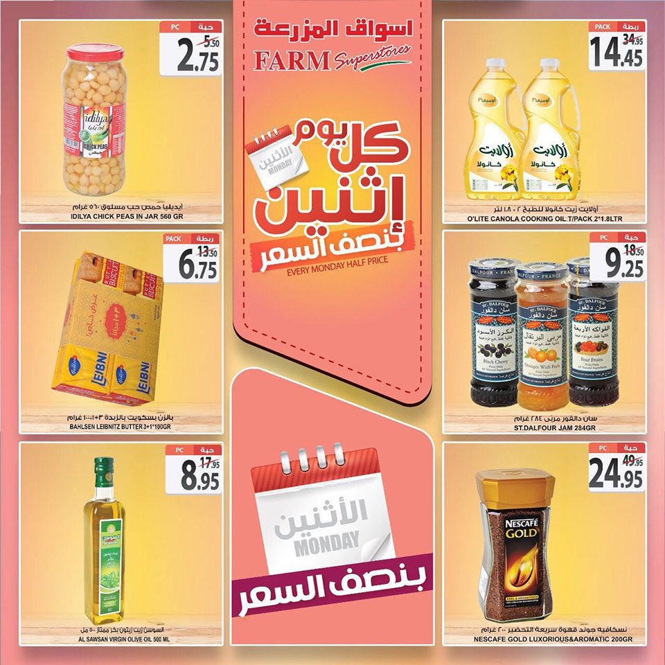 عروض نت تقدم لكم احدث عروض اسواق المزرعة السعودية الجديدة فى صفحة واحدة – عروض كل اثنين بنصف الثمن من اسواق المزرعة – و ذلك يوم الاثنين 16 سبتمبر 2019 او حتى نفاذ الكمية من اسواق المزرعة هايبر ماركت بجميع الفروع.