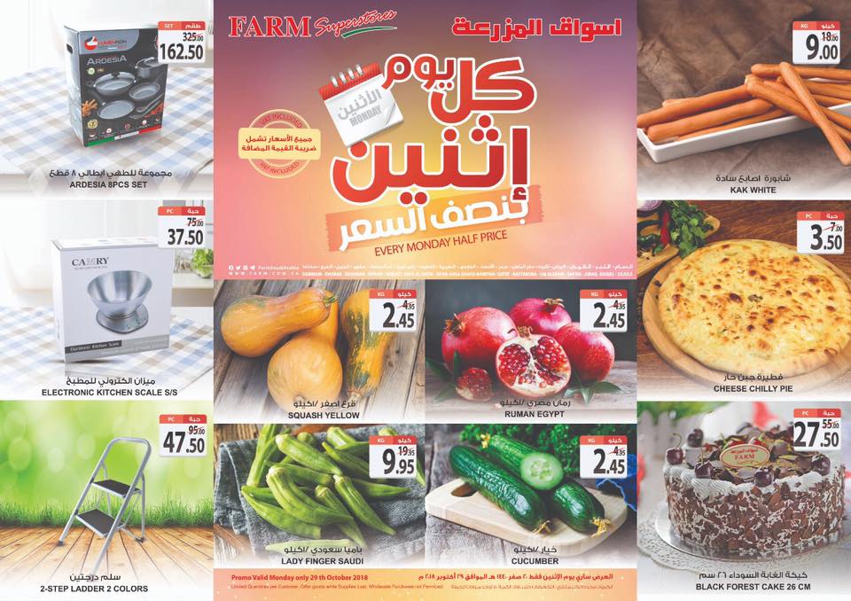 عروض نت تقدم لكم احدث عروض اسواق المزرعة السعودية الجديدة فى صفحة واحدة – عروض كل اثنين بنصف الثمن من اسواق المزرعة – و ذلك يوم الاثنين 29 اكتوبر 2018 او حتى نفاذ الكمية من اسواق المزرعة هايبر ماركت بجميع الفروع.