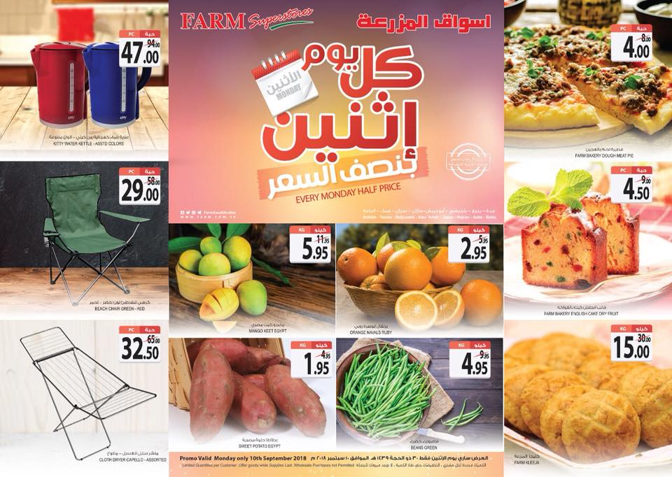 عروض نت تقدم لكم احدث عروض اسواق المزرعة السعودية الجديدة فى صفحة واحدة – عروض كل اثنين بنصف الثمن من اسواق المزرعة – و ذلك ليوم الاثنين الموافق 10 سبتمبر 2018 او حتى نفاذ الكمية من اسواق المزرعة هايبر ماركت بجميع الفروع.
