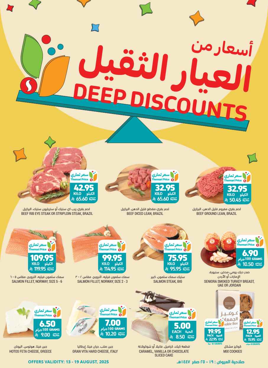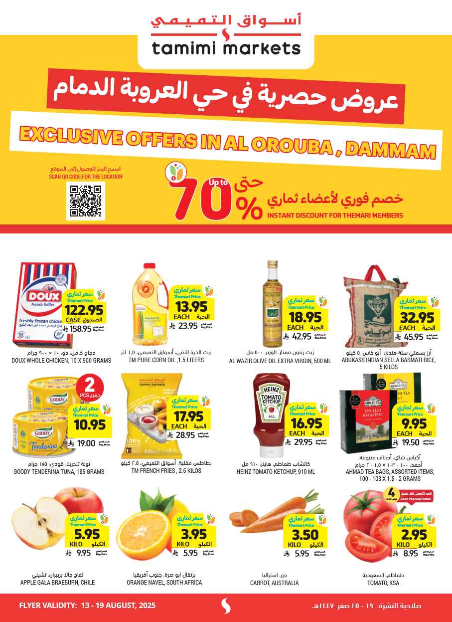 عروض التميمى اليوم سارية من 13 اغسطس حتى 19 اغسطس 2025 العروض الاسبوعية او حتى نفاذ الكمية فى فروع التميمى الدمام و التميمى الجبيل و التميمى حفر الباطن و التميمى الخبر و التميمى الاحساء و التميمى الظهران و التميمى الرياض و التميمى جدة و التميمى القصيم.