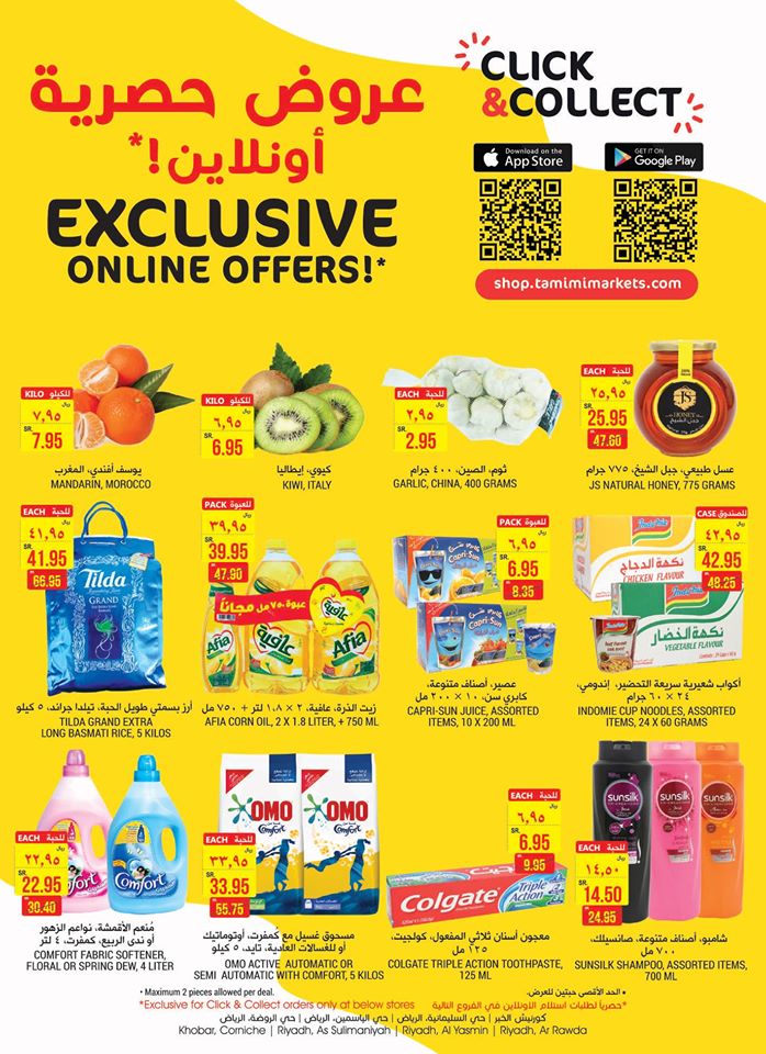 عروض التميمى اليوم سارية من 21 نوفمبر حتى 27 نوفمبر 2019 او حتى نفاذ الكمية فى فروع التميمى الدمام و التميمى الجبيل و التميمى حفر الباطن و التميمى الخبر و التميمى الاحساء و التميمى الظهران و التميمى الرياض و التميمى جدة و التميمى القصيم.