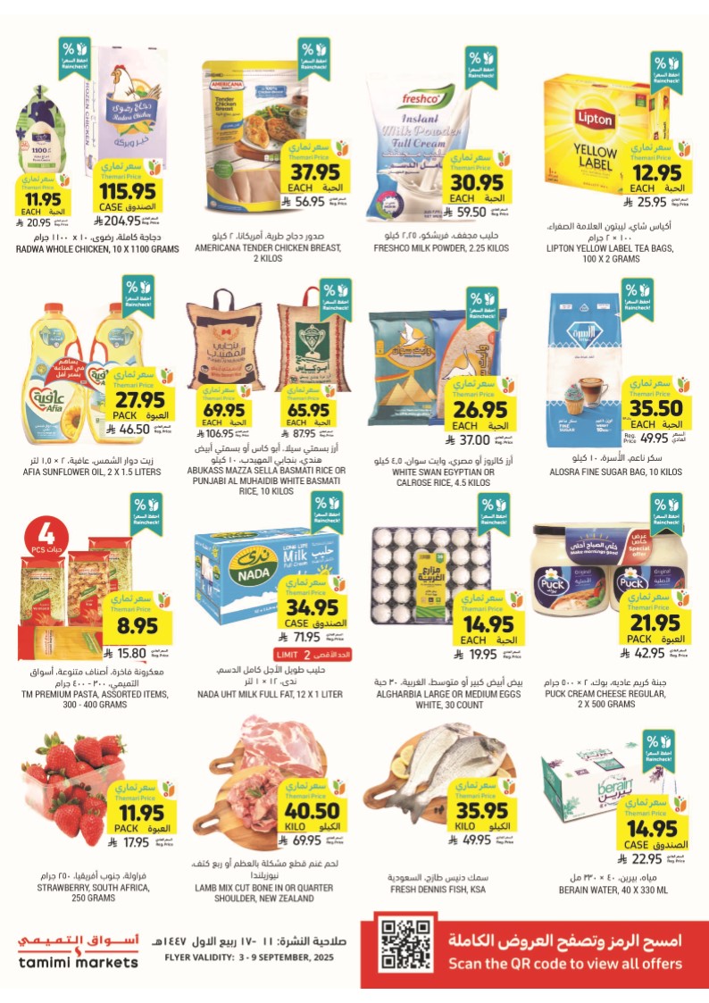 عروض التميمى اليوم سارية من 3 سبتمبر حتى 9 سبتمبر 2025 العروض الاسبوعية او حتى نفاذ الكمية فى فروع التميمى الدمام و التميمى الجبيل و التميمى حفر الباطن و التميمى الخبر و التميمى الاحساء و التميمى الظهران و التميمى الرياض و التميمى جدة و التميمى القصيم.