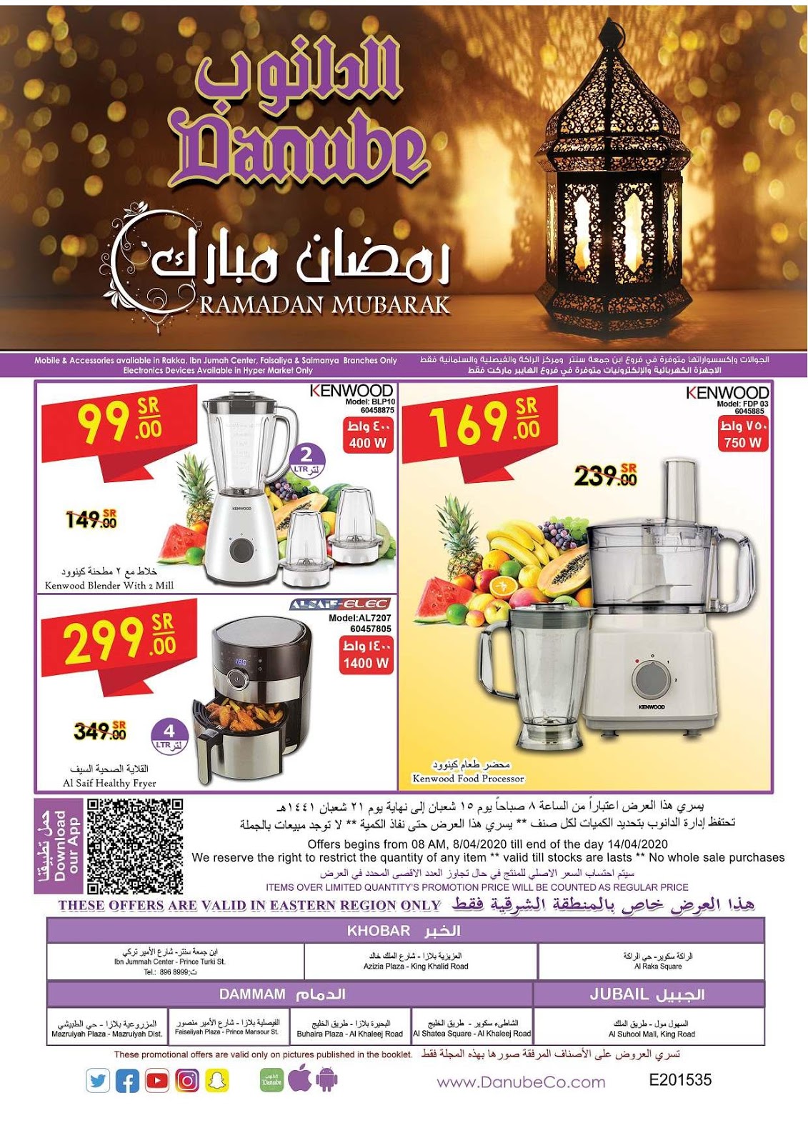 عروض الدانوب اليوم سارية من يوم 8 ابريل حتى 14 ابريل 2020 او حتى نفاذ الكمية فى فروع الدانوب الدمام و الدانوب الخبر و الدانوب الاحساء.