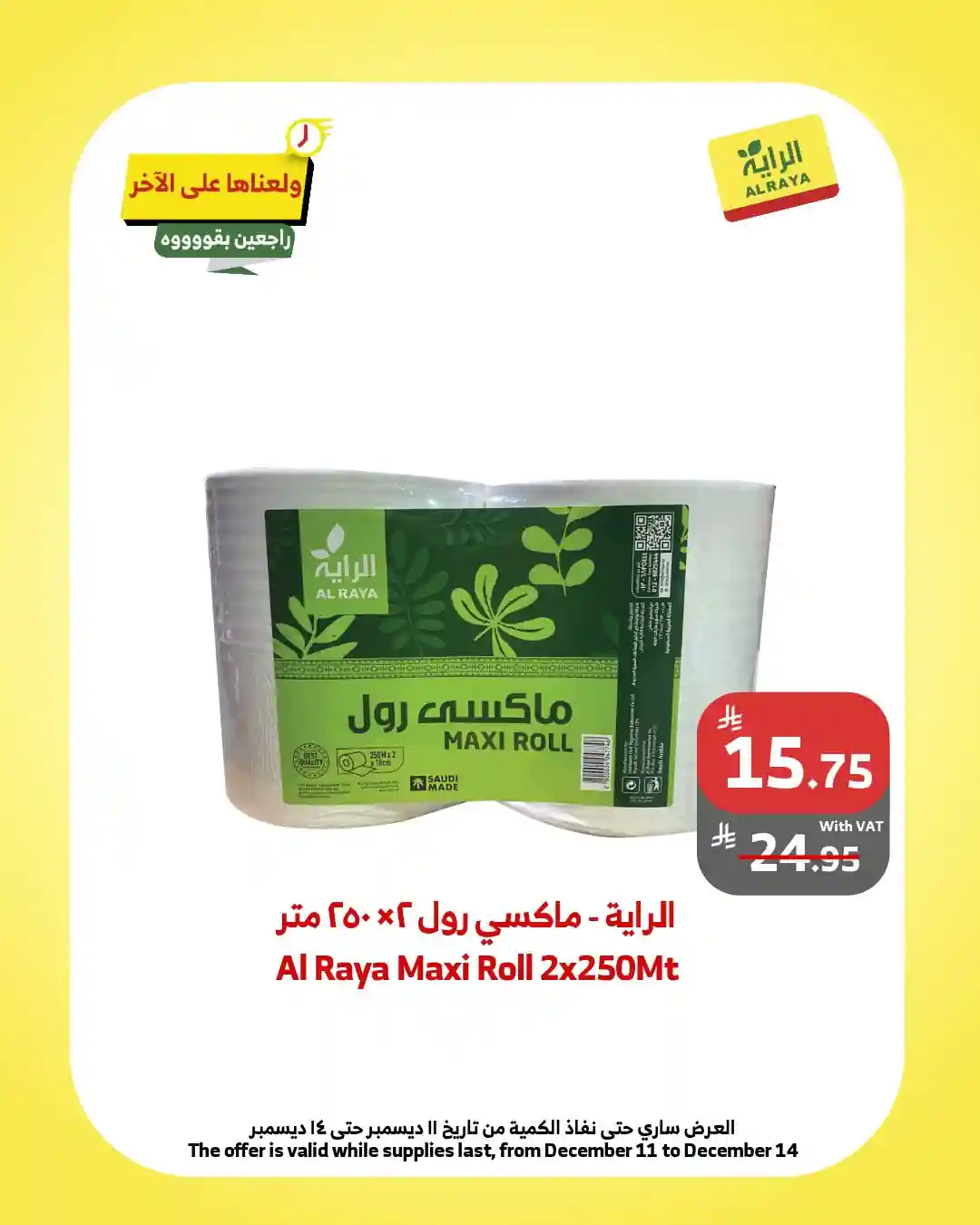 عروض الراية السعودية اليوم سارية فقط من 11 ديسمبر حتى 14 ديسمبر 2025 الويكند فى جميع فروع اسواق الراية جدة و اسواق الراية الجنوبية.