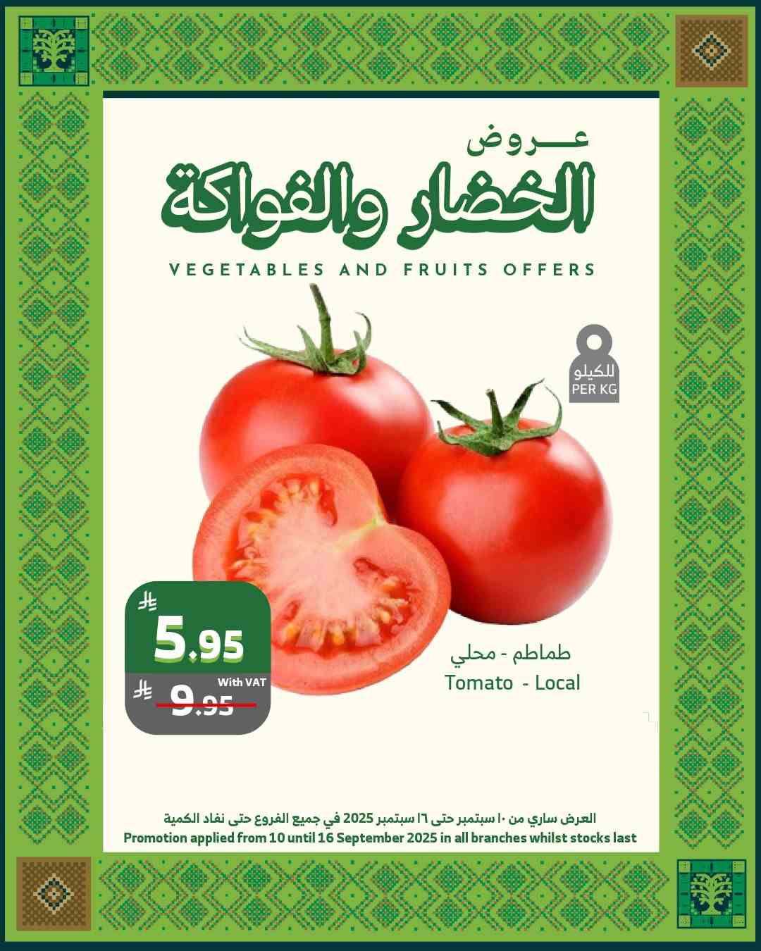 عروض الراية السعودية اليوم سارية فقط اليوم الجمعة 12 سبتمبر 2025 الخضار و الفاكهة فى جميع فروع اسواق الراية جدة و اسواق الراية الجنوبية.