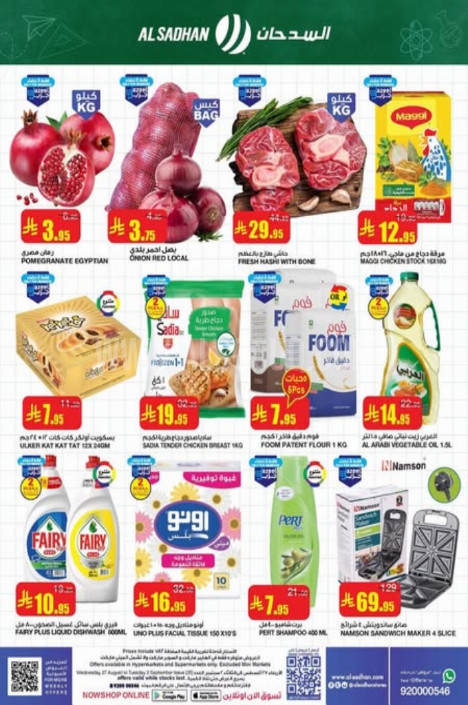 عروض السدحان اليوم سارية من 27 اغسطس حتى 2 سبتمبر 2025 او حتى نفاذ الكمية فى فروع السدحان الرياض و السدحان الورود و السدحان الروضة و السدحان الربوة و السدحان الروابى و السدحان شبرا و السدحان الخريص و السدحان الصحافة و السدحان السلمانية و السدحان المروج