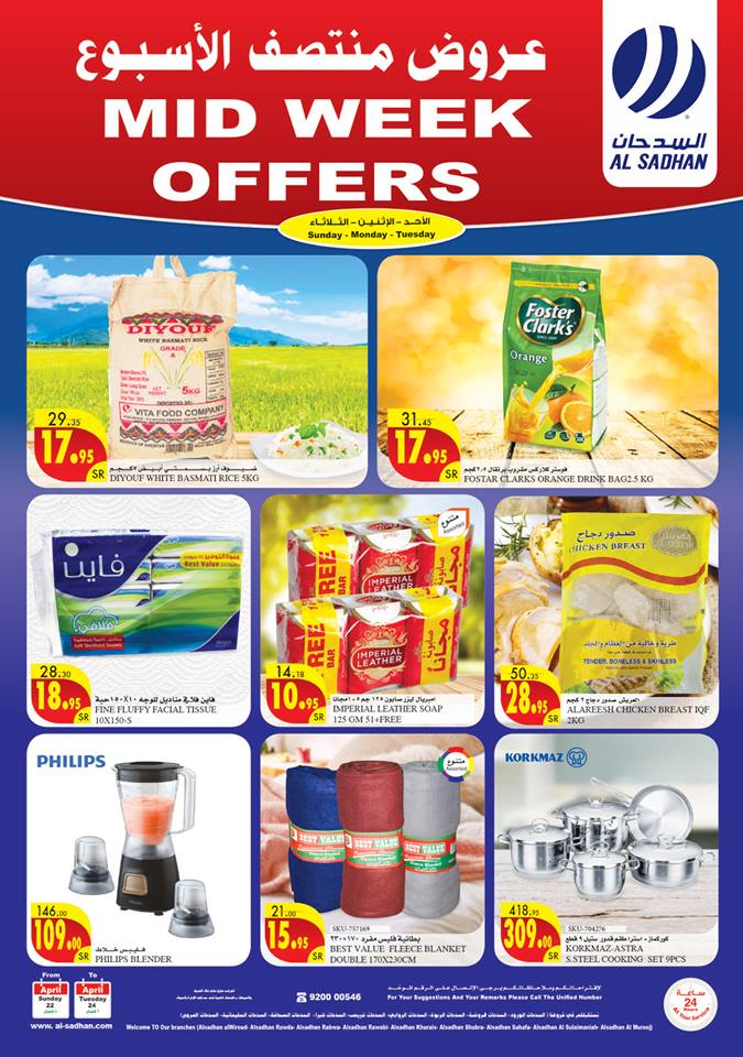 عروض السدحان الرياض اليوم سارية من 22 ابريل 2018 حتى 24 ابريل 2018 او حتى نفاذ الكمية فى فروع السدحان الرياض و السدحان الورود و السدحان الروضة و السدحان الربوة و السدحان الروابى و السدحان شبرا و السدحان الخريص و السدحان الصحافة و السدحان السلمانية و السدحان المروج