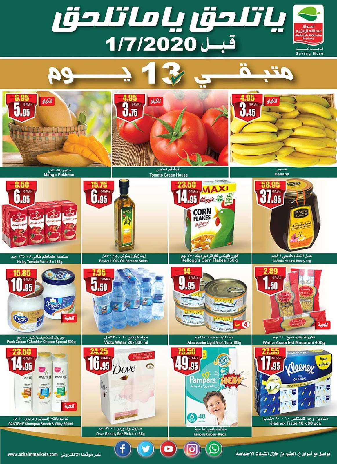 عروض نت تقدم لكم احدث عروض العثيم السعودية اليوم الجديدة فى صفحة واحدة – العروض الاسبوعية من اسواق العثيم هايبر ماركت – و ذلك من 17 يونيو حتى 23 يونيو 2020 او حتى نفاذ الكمية من اسواق عبد الله العثيم السعودية بجميع الفروع.