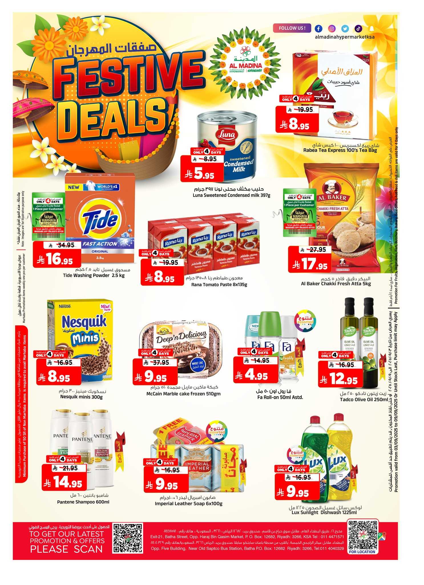 عروض نت تقدم لكم احدث عروض المدينة هايبر ماركت الرياض اليوم الجديدة فى صفحة واحدة – العروض الاسبوعية من المدينة هايبر ماركت – و ذلك من 3 سبتمبر حتى 9 سبتمبر 2025 و حتى نفاذ الكمية من المدينة هايبر ماركت بجميع الفروع.
