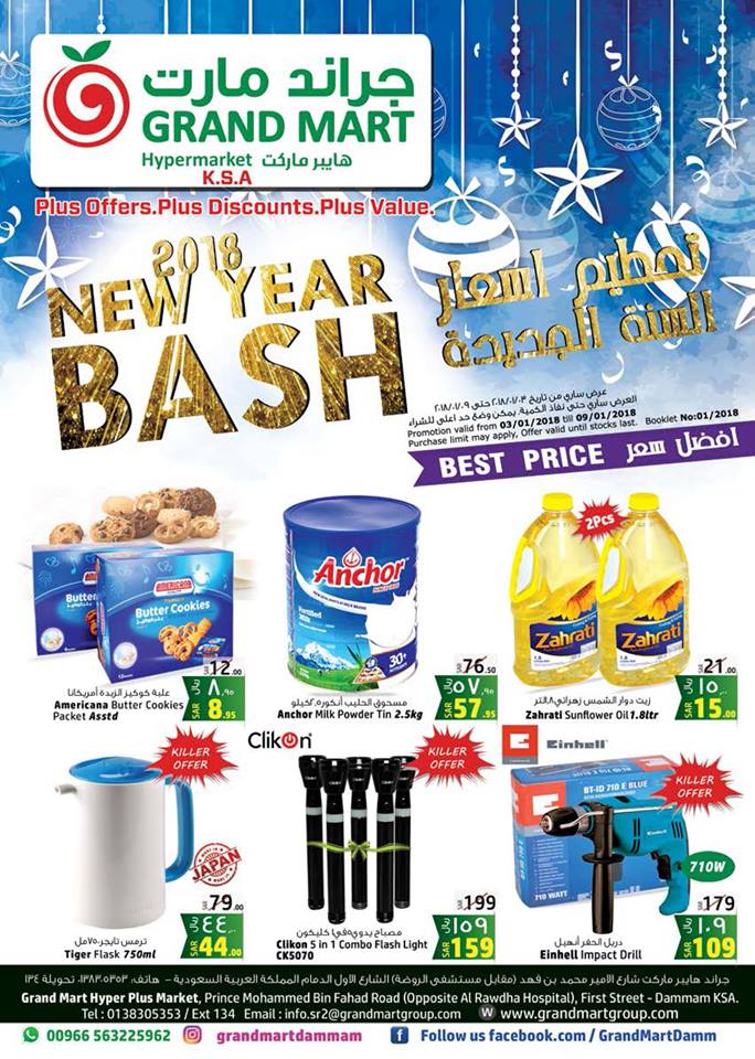 عروض جراند مارت اليوم سارية من 3 يناير 2018 حتى 9 يناير 2018 فى فروع جراند مارت الدمام و جراند مارت الشرقية