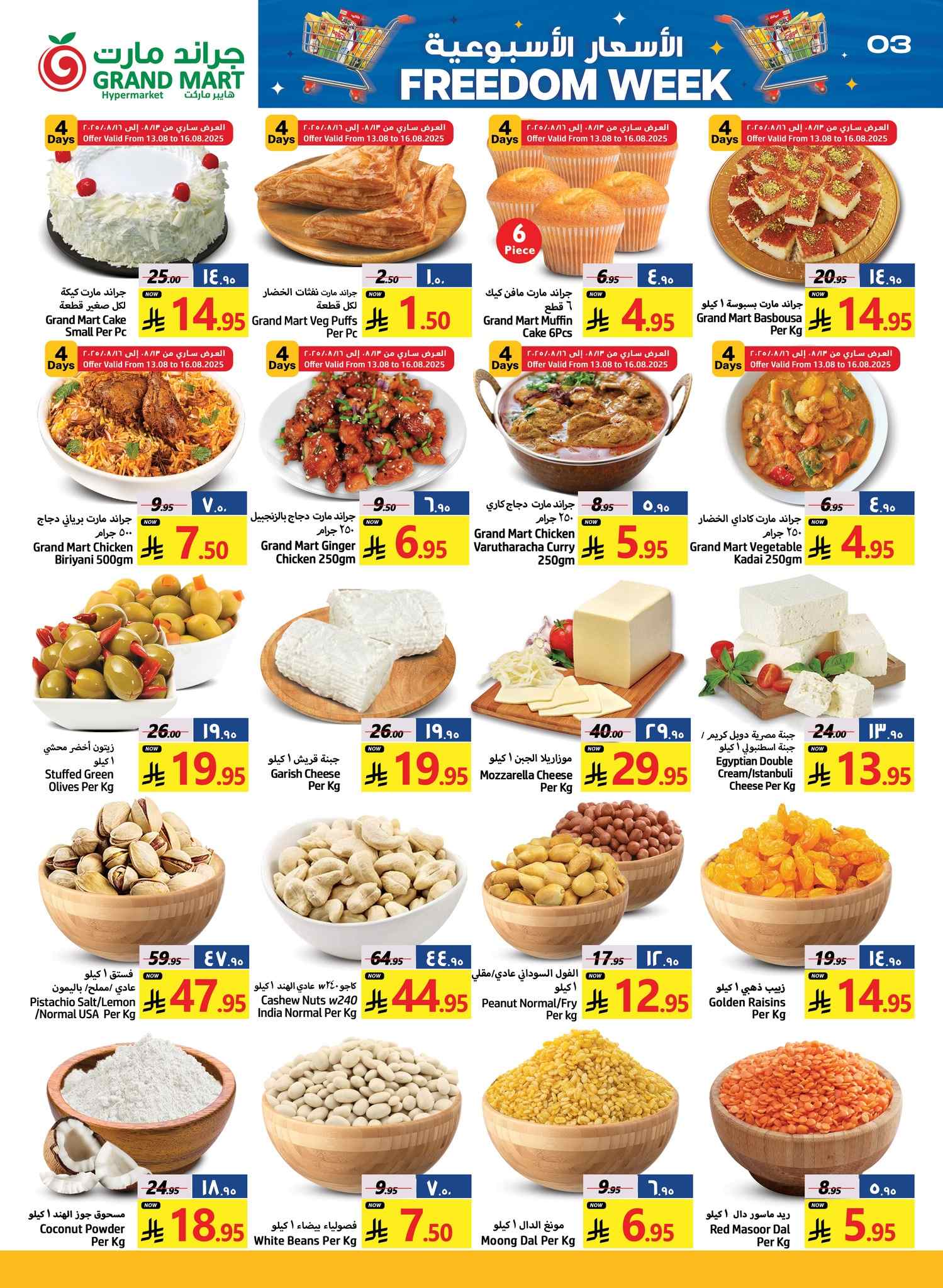 عروض نت تقدم لكم احدث عروض جراند مارت الدمام اليوم الجديدة فى صفحة واحدة – العروض الاسبوعية من جراند مارت هايبر ماركت – و ذلك من 13 اغسطس حتى 19 اغسطس 2025 او حتى نفاذ الكمية من جراند مارت السعودية بجميع الفروع.