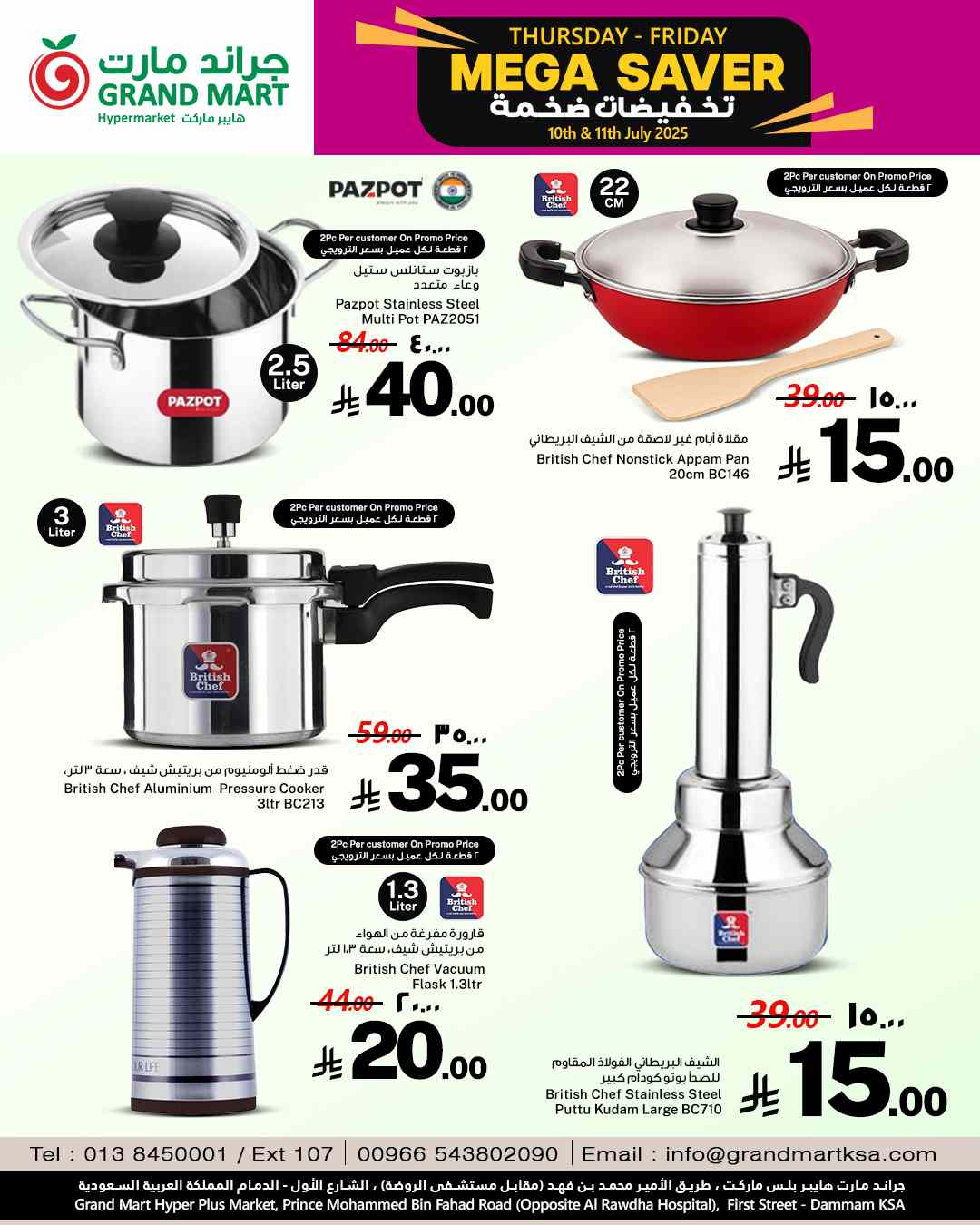 عروض جراند مارت الدمام اليوم 10 و 11 يوليو 2025 تخفيضات ضخمة