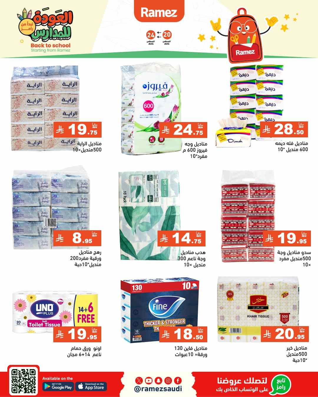 عروض نت تقدم لكم احدث عروض رامز السعودية اليوم الجديدة فى صفحة واحدة – عروض رامز السعودية 2025 – و ذلك من 20 اغسطس حتى 24 اغسطس 2025 العوددة للمدارس او حتى نفاذ الكمية من رامز السعودية بجميع الفروع.