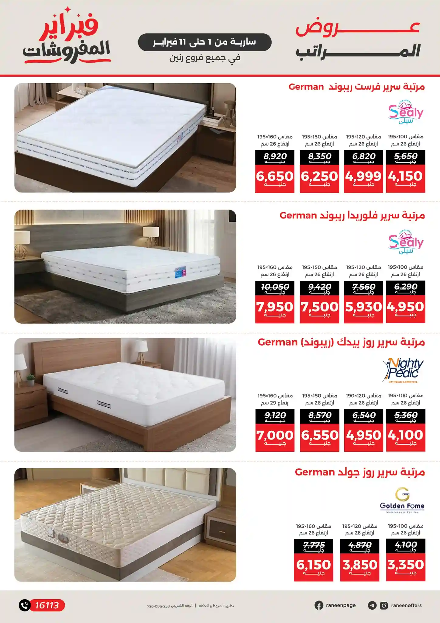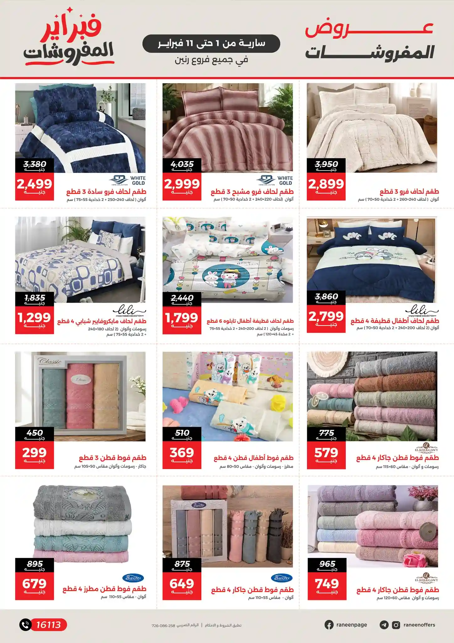 تسرى عروض رنين من يوم 1 فبراير حتى 11 فبراير 2026 مفروشات بيتك علينا بجميع الفروع