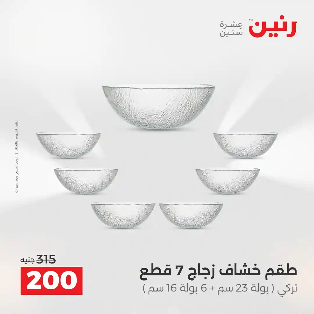 تقدم شركة رنين للادوات المنزلية عروض يومية لجميع ايام الاسبوع على الادوات المنزلية والاجهزة الكهربائية كما تقدم مهرجان عروض ال 15 جنيه الاحد من كل اسبوع ومهرجان عروض ال 99 جنيه الثلاثاء من كل اسبوع ومهرجان عروض ال 10 جنيه الاربعاء من كل اسبوع ومهرجان عروض ال 20 جنيه الجمعة والسبت من كل اسبوع واليكم احدث عروض رنين