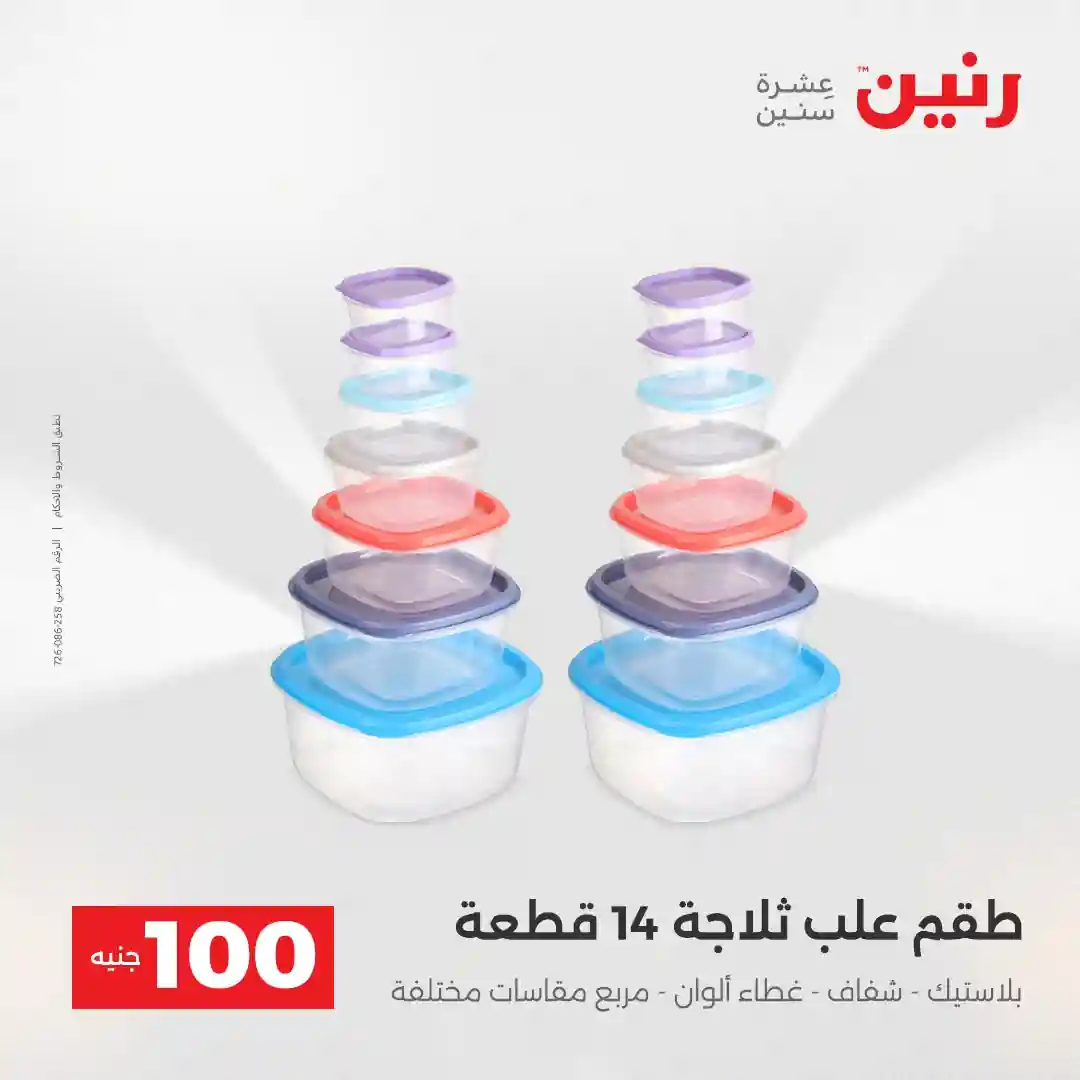 تقدم شركة رنين للادوات المنزلية عروض يومية لجميع ايام الاسبوع على الادوات المنزلية والاجهزة الكهربائية كما تقدم مهرجان عروض ال 15 جنيه الاحد من كل اسبوع ومهرجان عروض ال 99 جنيه الثلاثاء من كل اسبوع ومهرجان عروض ال 10 جنيه الاربعاء من كل اسبوع ومهرجان عروض ال 20 جنيه الجمعة والسبت من كل اسبوع واليكم احدث عروض رنين
