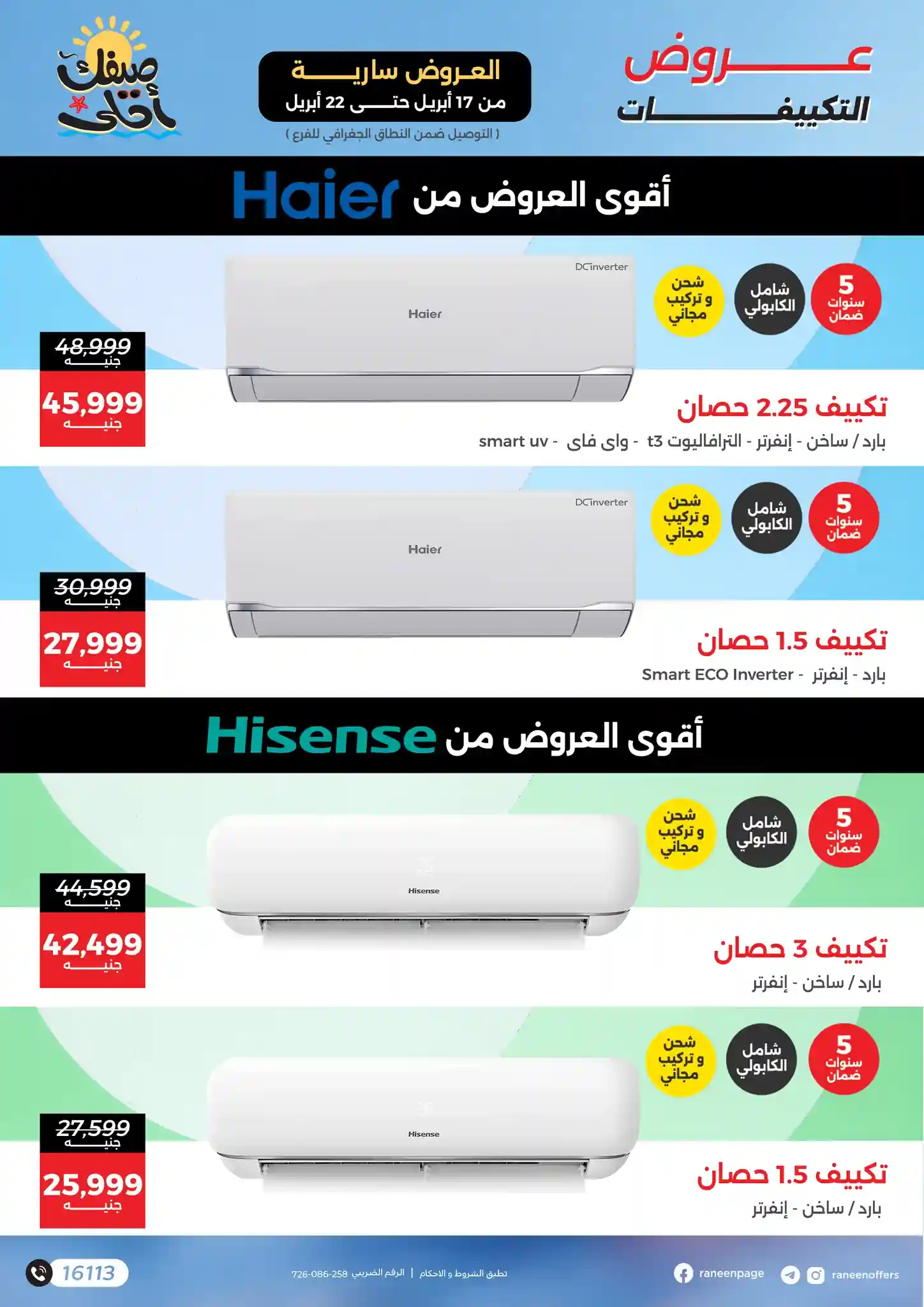 تسرى العروض من 17 ابريل حتى 30ابريل 2026 خصومات التكييفات فى كل فروع رنين