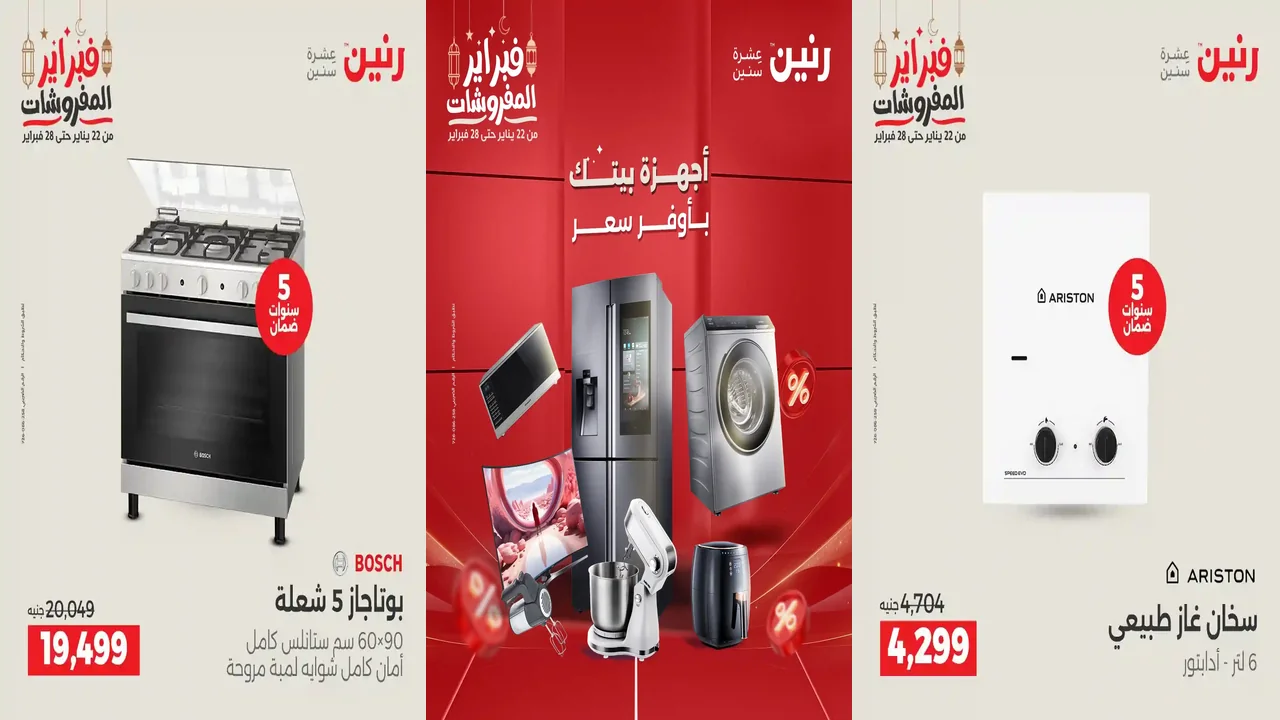 عروض رنين سارية يوم الاحد و الاثنين 22 و 23 فبراير 2026 للأجهزة الكهربائية بجميع الفروع