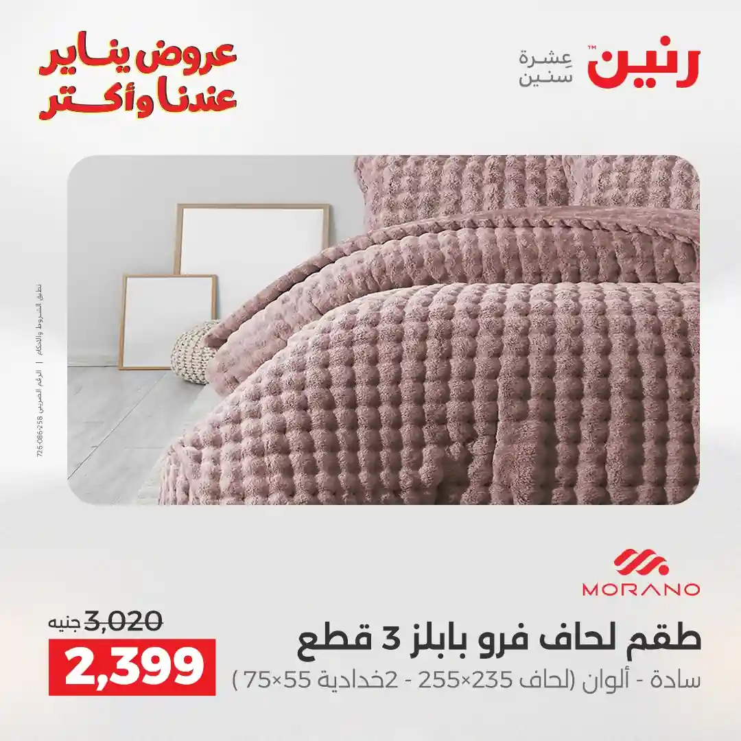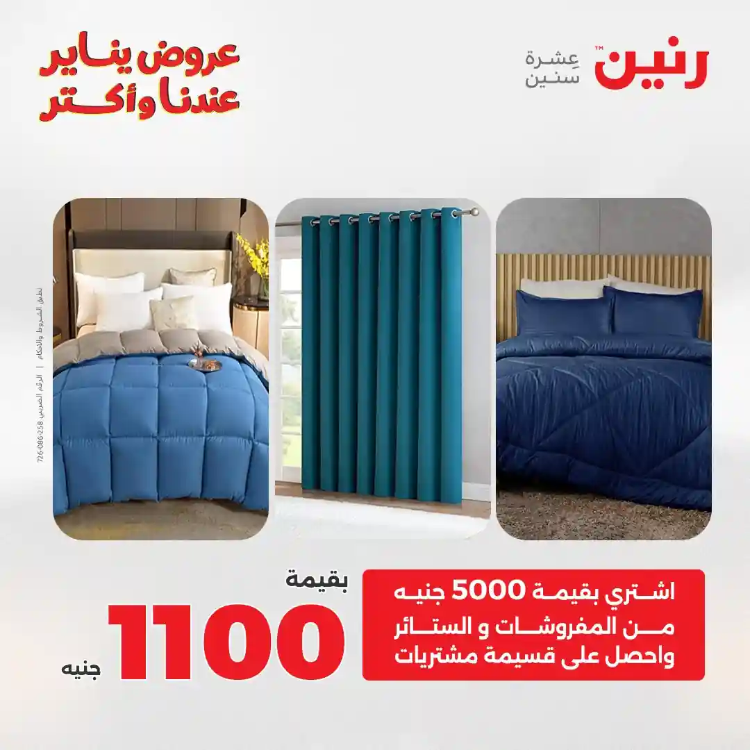 عروض رنين اليوم الاربعاء 7 يناير 2026 المفروشات والمنسوجات بجميع فروع رنين