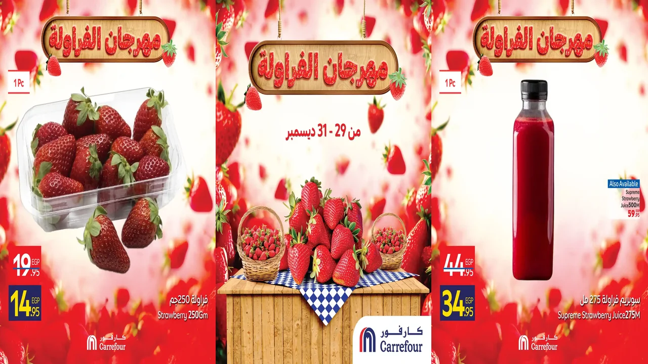 عروض كارفور مصر 2026 الجديدة من يوم 29 ديسمبر حتى 31 ديسمبر 2025 مهرجان الفراولة او حتى نفاذ الكمية نستعرضها معكم فى صفحة واحدة على موقع عروض نت لاحدث العروض فى مصر