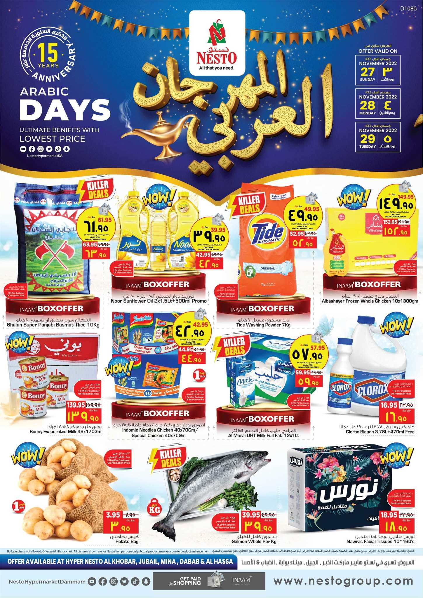 عروض نستو الدمام اليوم سارية من 27 نوفمبر حتى 29 نوفمبر 2022 او حتى نفاذ الكمية فى فروع نستو الدمام و نستو الخبر و نستو الجبيل و نستو الاحساء