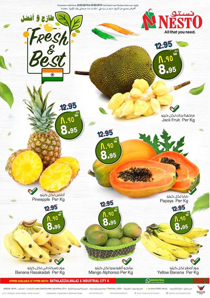 عروض نستو الرياض اليوم سارية من 22 مايو 2019 حتى 25 مايو 2019 فى فروع نستو الرياض و نستو البطحاء و نستو العزيزية و نستو المدينة الصناعية و نستو الملز و نستو الرس و نستو شقراء و نستو المجمعة و نستو فيلاجيو مول و نستو بريدة