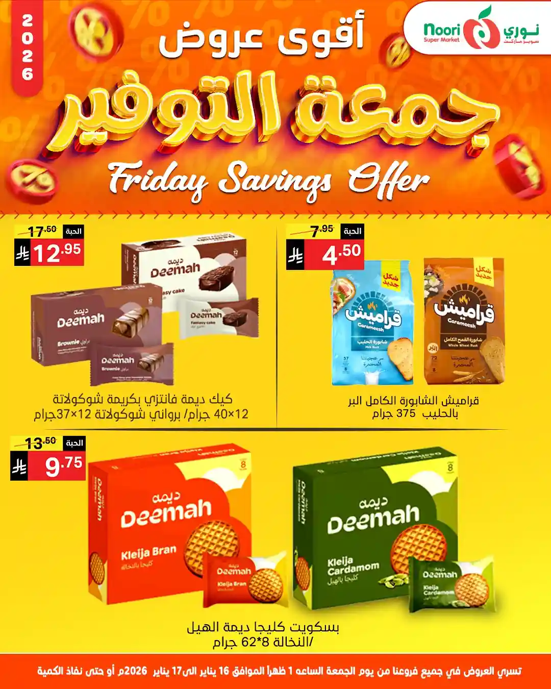 عروض نورى السعودية اليوم سارية من 16 و 17 يناير 2026 جمعة التوفير او حتى نفاذ الكمية فى فروع نورى مكة المكرمة و نورى العزيزية و نورى العتيبية و نورى شارع الحج و نورى جبل النور و نورى الشرقية و نورى الشرائع