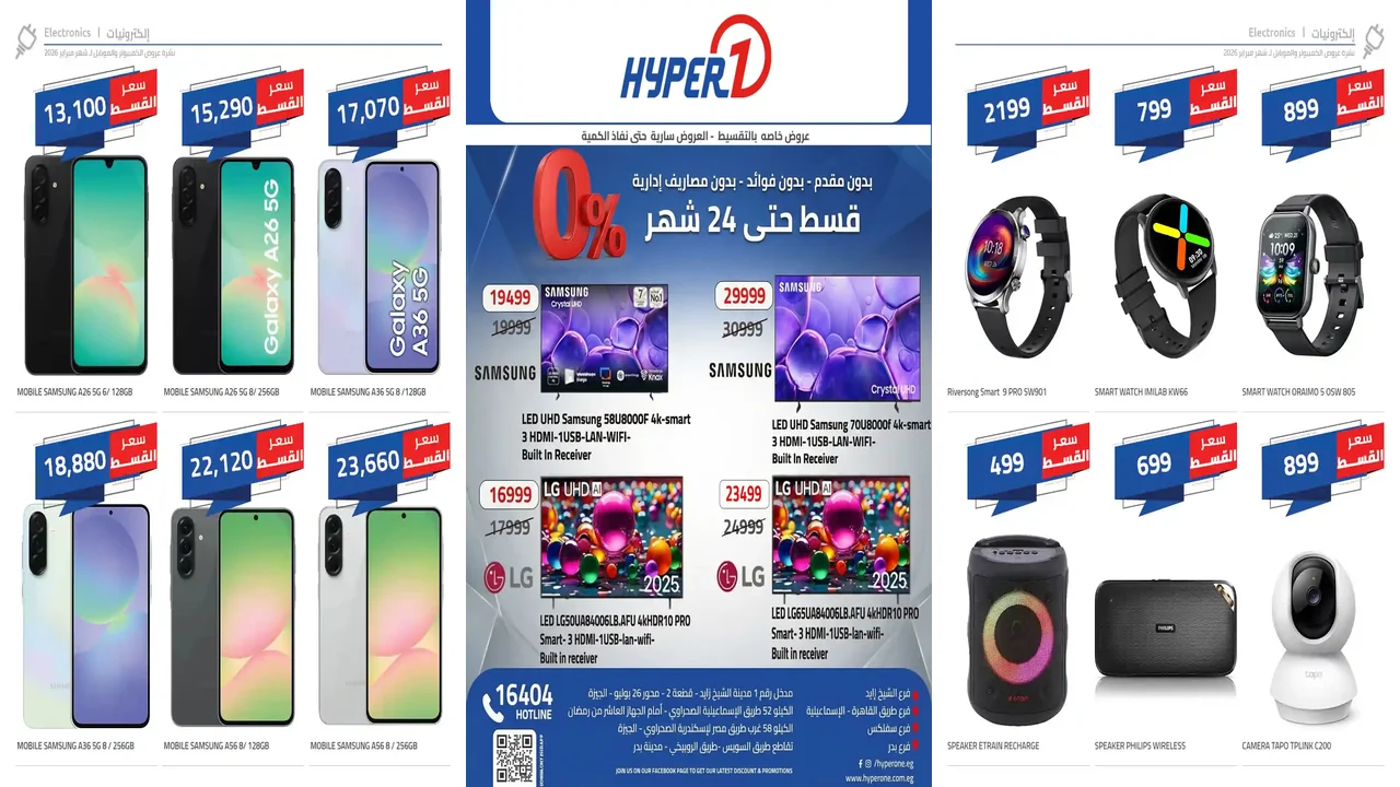 عروض الاسبوع من هايبروان سارية من 12 فبراير حتى 28 فبراير 2026 عروض الاليكترونيات او حتى نفاذ الكمية بجميع فروع هايبر وان